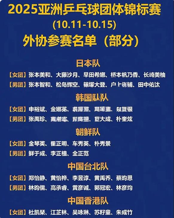 2025年亚锦赛团体赛将于10月11日在印度的奥里萨邦首府布巴内斯瓦尔打响。